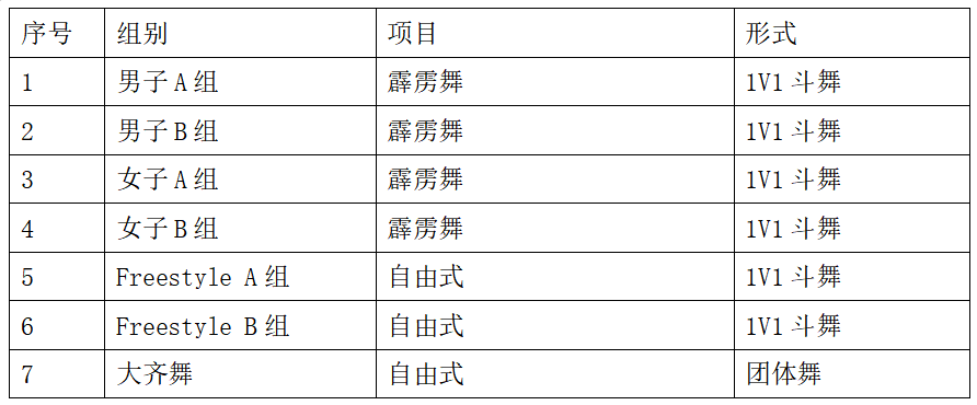 (七)比赛采用中国体育舞蹈联合会最新霹雳舞比赛规则,执行《世界体育舞蹈联合会竞赛规则手册2019.2(第一版)》。
