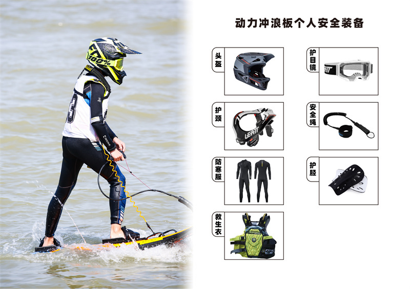 动力冲浪板应为二冲程发动机,排量110cc及以下,板体重量(除油箱)不超过30公斤。