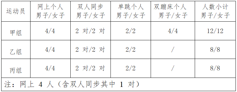 (4)双蹦床个人预、决赛完成两套符合要求的自选动作。