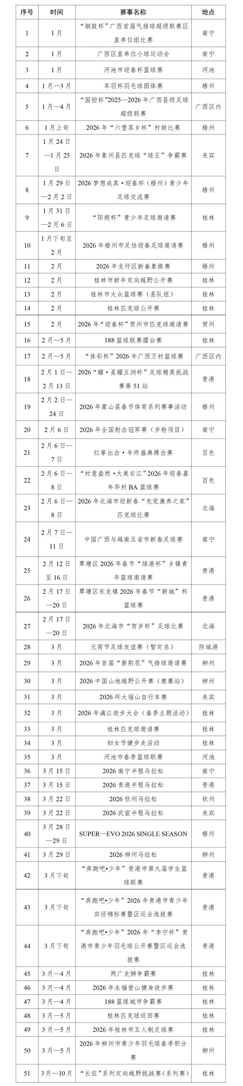 2026年一季度广西体育赛事目录信息如下: