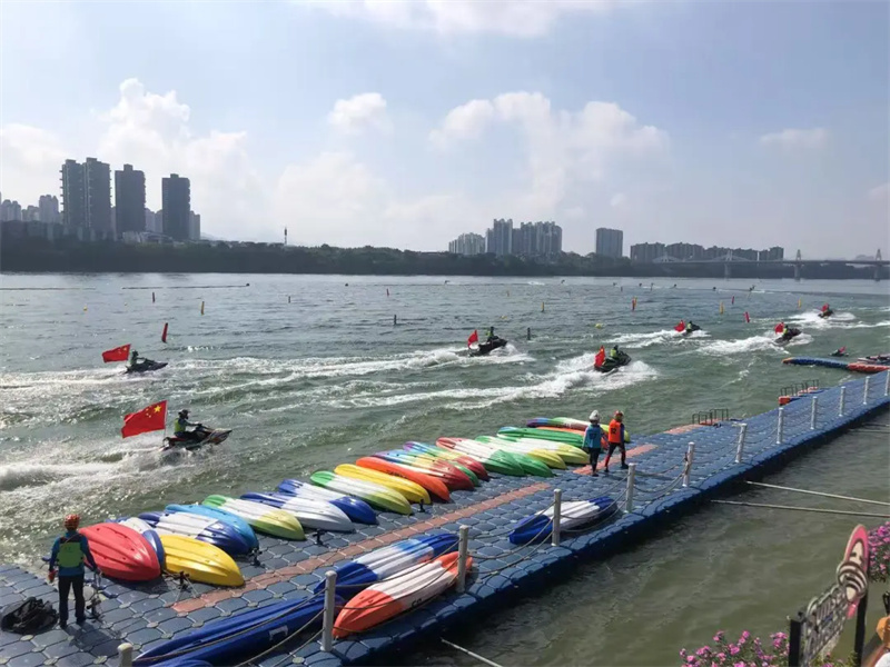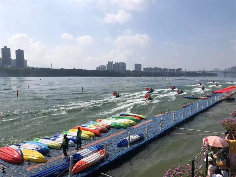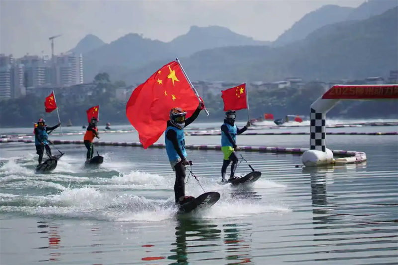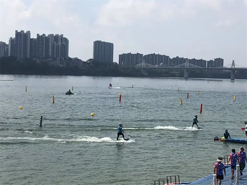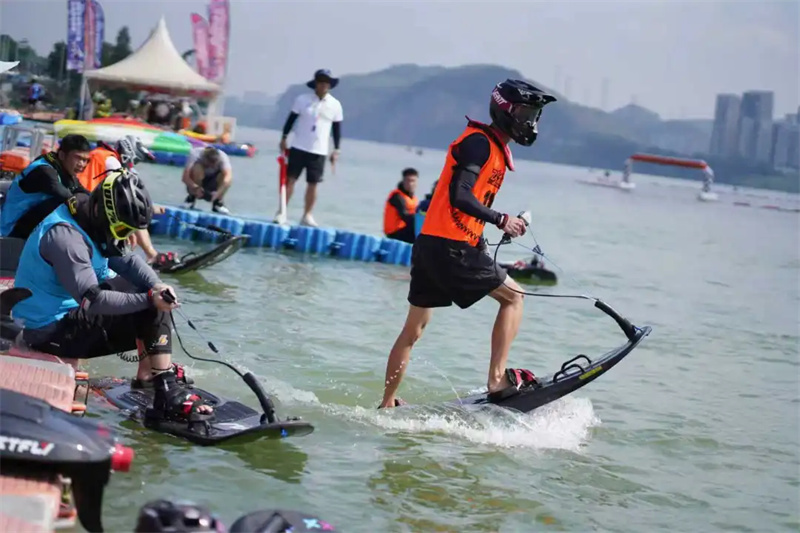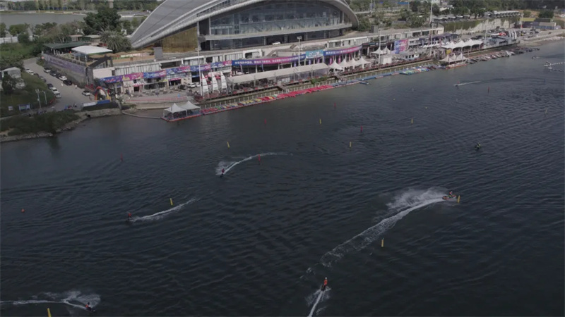 随后,精彩的水上表演节目将现场气氛推向高潮,动力冲浪板选手们带来的巡游表演引得观众阵阵喝彩。