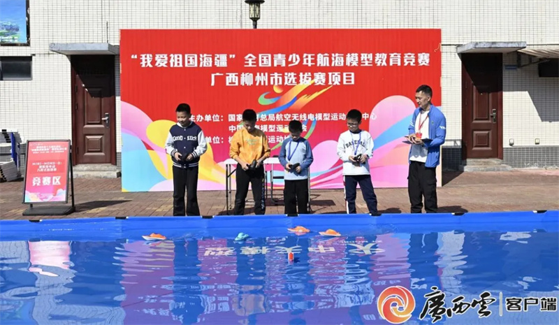 图为柳州市第十六届运动会航空航天航海模型竞赛现场,青少年选手正在竞技遥控模型船科目。江南 摄