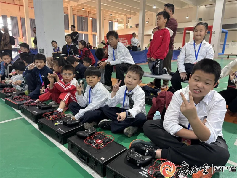 图为柳州市第十六届运动会航空航天航海模型竞赛现场,参加多轴无人机花式飞行赛车的青少年选手正在候场。唐绍怡 摄