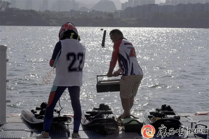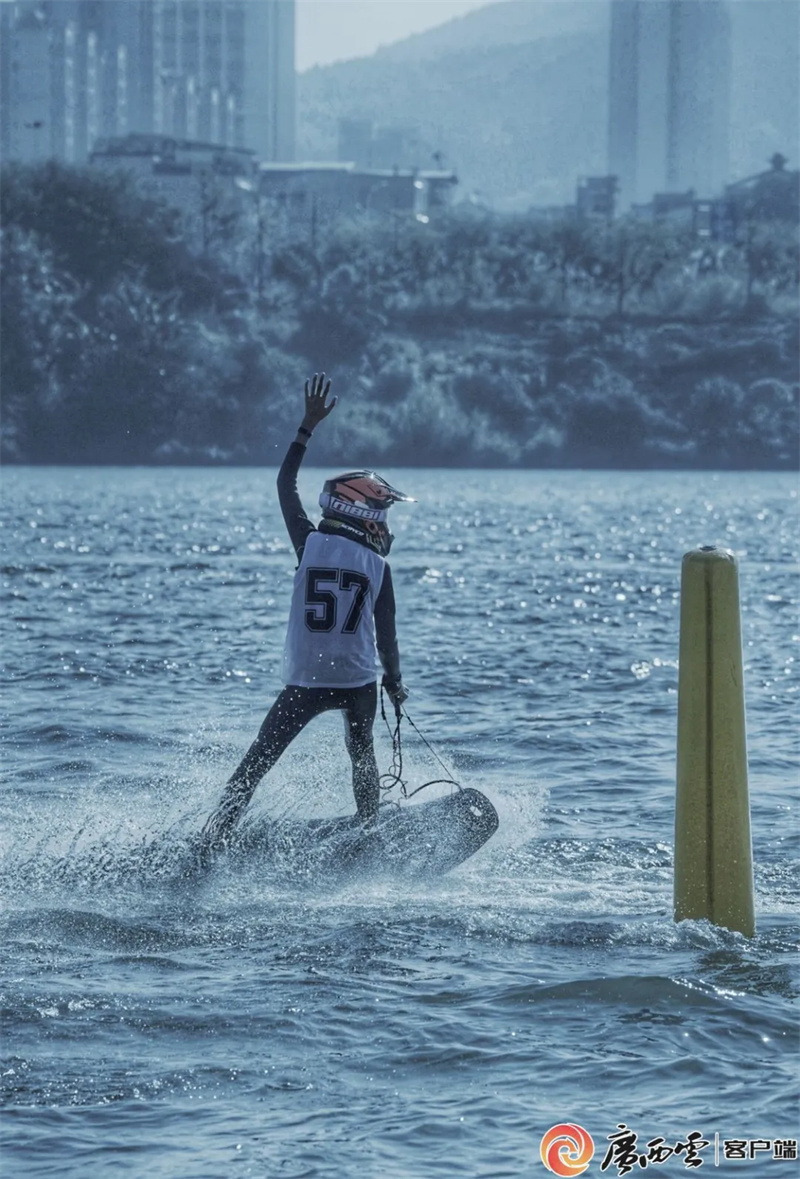 在记者的相机取景框中,一个个身着防寒服、头戴防护头盔和护目镜、脚踏动力冲浪板的少年,在柳江上如灵动的鱼儿般鱼跃环桩竞速。他们时而轻盈地跳跃过桩,时而敏捷地侧身避险,激起阵阵洁白的浪花,宛如一群过江之鲫,在碧波中尽情驰骋,书写着属于他们的青春与激情。