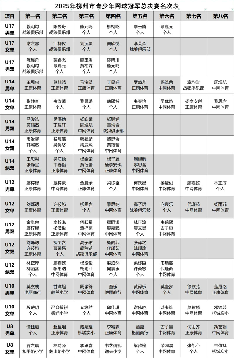 全力以赴,永攀高峰——2025年柳州市青少年网球冠军总决赛圆满落幕!