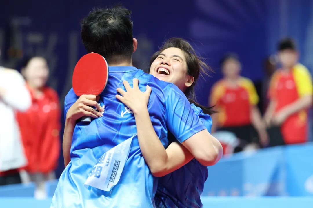黄梦萍与罗振邦的缘分始于乒乓球。两人在训练中相识,此后相互扶持,于2014年相恋,又在2019年登记结婚,完成了从球场搭档到人生伴侣的圆满约定。搭档混双至今,他们已携手征战多个重大赛事,合作长达二十年。