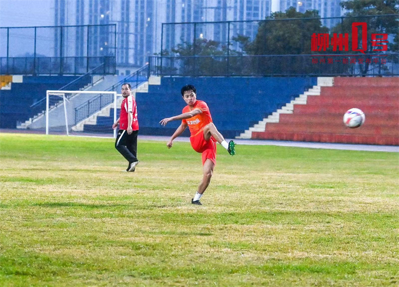 传球训练、射门训练、体能训练……12月23日晚,在瑞龙路旁五菱家园内的足球场上,即将代表柳州参加广西县级足球超级联赛(以下简称广西“县超”)的柳州市柳南区代表队(以下简称“柳南区队”)正在进行训练,他们的首场广西“县超”比赛将在明年1月上旬开赛,客场对阵同城的融水苗族自治县队(以下简称“融水队”)。