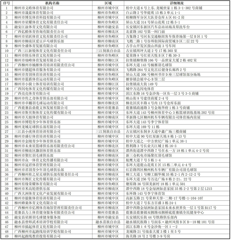 柳州市体育类校外培训机构2026年第一次白名单汇总公示
