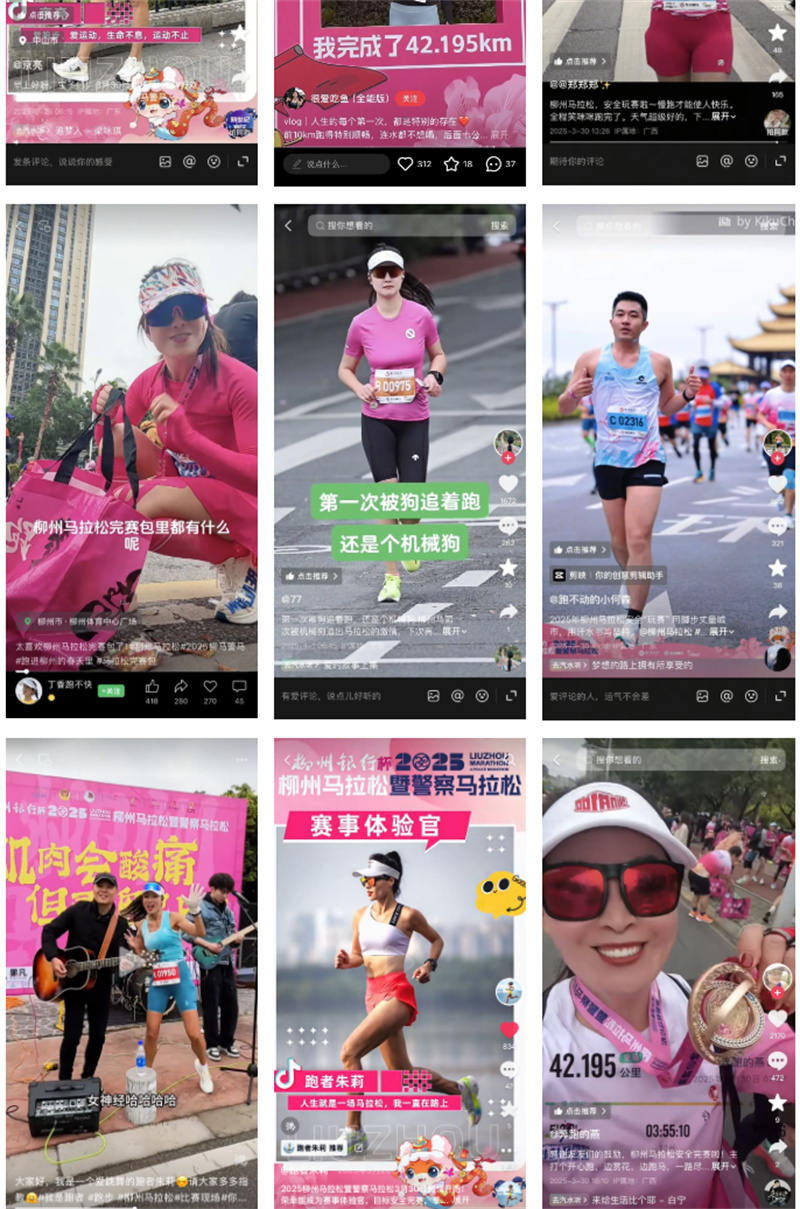 内容方向建议:围绕赛事推荐的主线任务,跑进柳州网红城市风光、跑去柳州打卡网红美食,分享自身奔跑故事、往届参赛经历等。
