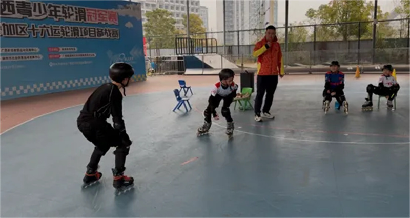 柳州轮滑健儿积极备战区运会专业教练田京利来柳开展现场指导