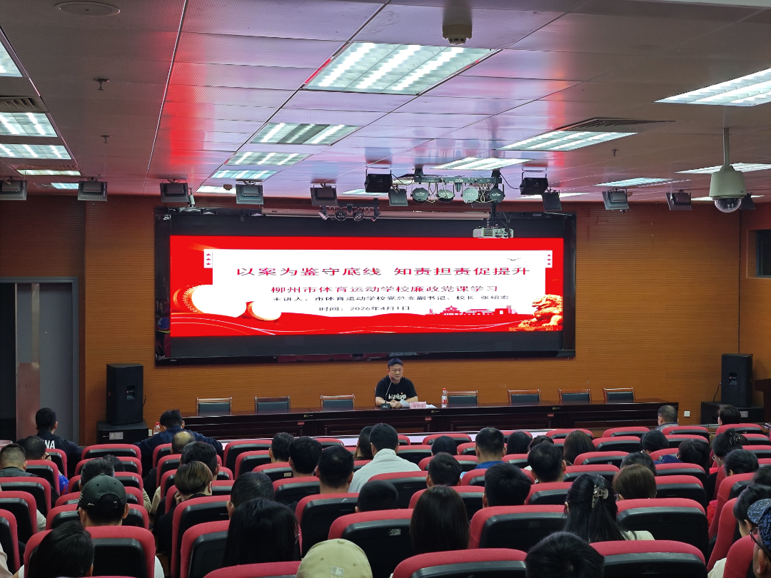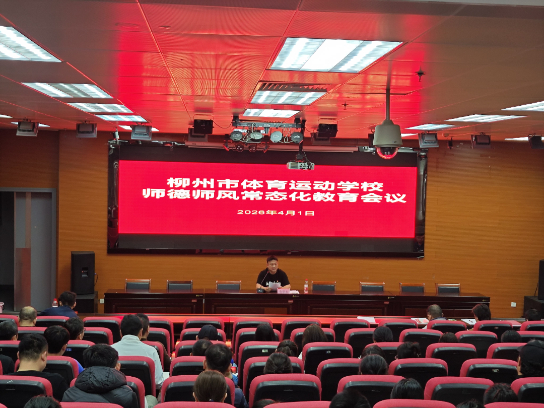 为深入贯彻习近平总书记关于作风建设重要指示精神,贯彻落实中央八项规定及其实施细则精神,持之以恒纠治“四风”,进一步加强体育系统作风建设。2026年4月1日,柳州市体育运动学校在市游泳馆新闻发布厅召开柳州市体育运动学校全体干部职工大会、师德师风常态化警示教育暨廉政党课会议。