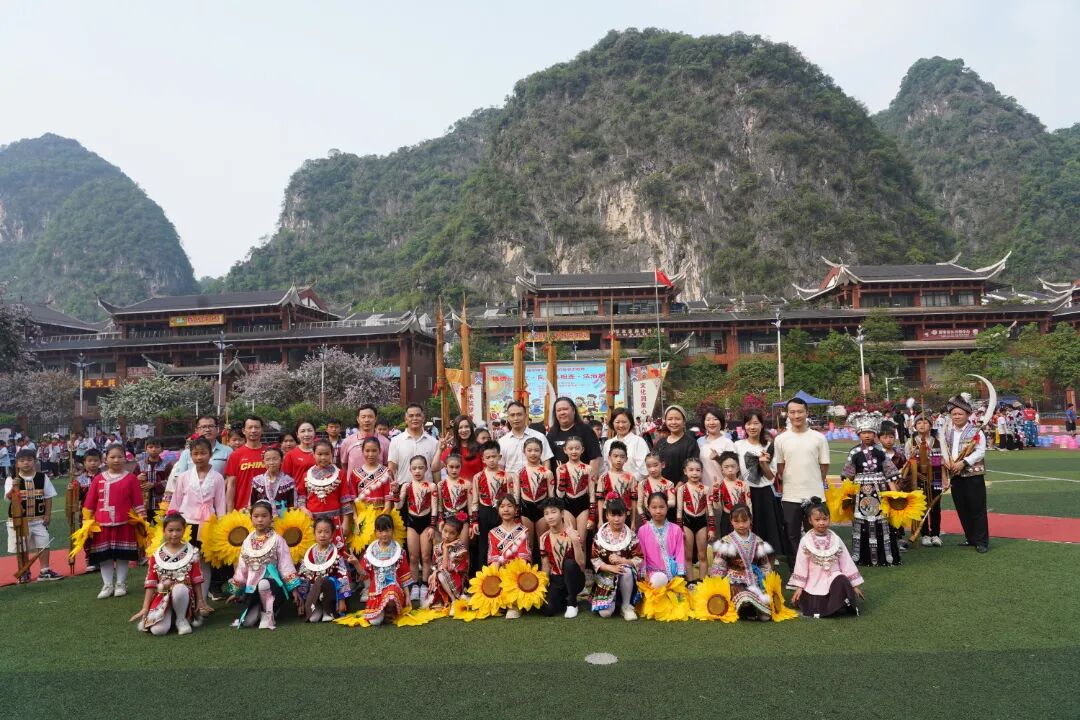 本次活动正值民进社会服务主题年,民进柳州市委充分发挥教育文化主界别优势,搭建多元文化交流平台,为苗乡孩子带来关怀与温暖。活动现场氛围热烈,各年级学生带来扁担舞、板鞋竞速、拉鼓竞技等民族传统体育展演,尽显民族文化活力与少年朝气。由民进柳州市委特别选送,民进柳州市委委员关苇,以及王佳琳、龚锃两位教练带领的柳州市体育运动学校技巧队,带来的小蹦床与技巧组合表演惊艳全场,成为活动一大亮点。