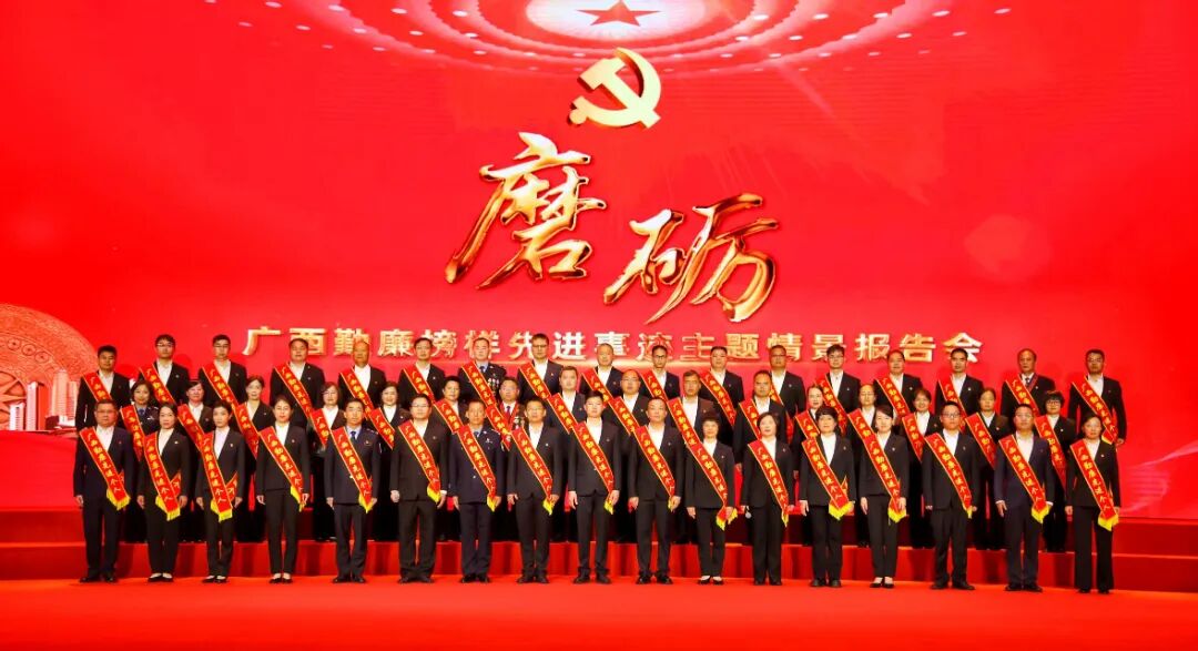 报告会以“磨砺”为核心主题,通过视频短片、现场宣讲、互动采访等形式,全景展现勤廉榜样对党忠诚、实干担当的精神风貌。当5名报告人深情讲述先进事迹时,现场党员同志专注聆听、深受触动;50名广西勤廉先进个人集体朗诵诗歌《磨砺》,铿锵有力的诵读声中,大家真切感受到奋斗之壮美、磨砺之珍贵,深刻体会“既廉又勤、既干净又干事”的时代内涵。