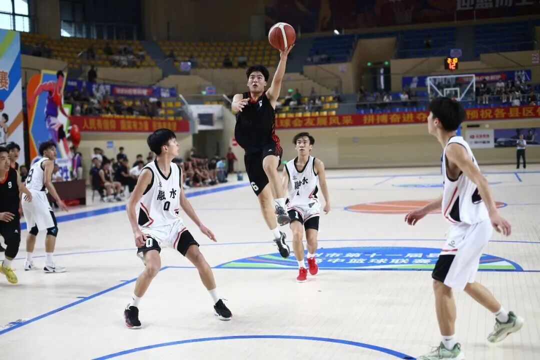 高中男子篮球决赛随即上演,融水高中男篮外线精准、内线稳固,牢牢掌控节奏;鹿寨高中男篮顽强追赶、积极轮转,双方激烈对抗、敢打敢拼,最终融水队摘得男篮桂冠。