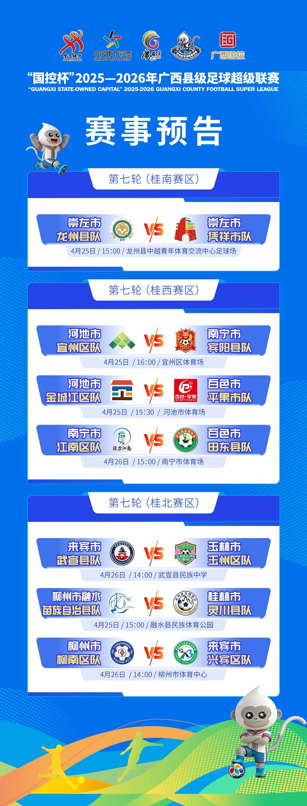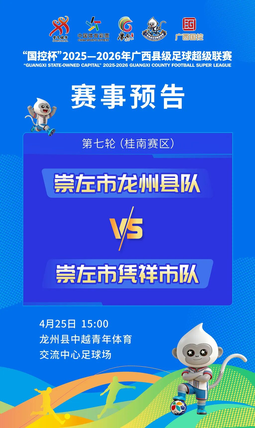 4月25日—26日,锁定赛场,见证“广西县超”联赛小组赛终极收官战!看球员们在绿茵场上挥洒汗水、展现实力,感受广西县级足球的独特魅力,见证每一个精彩瞬间!
