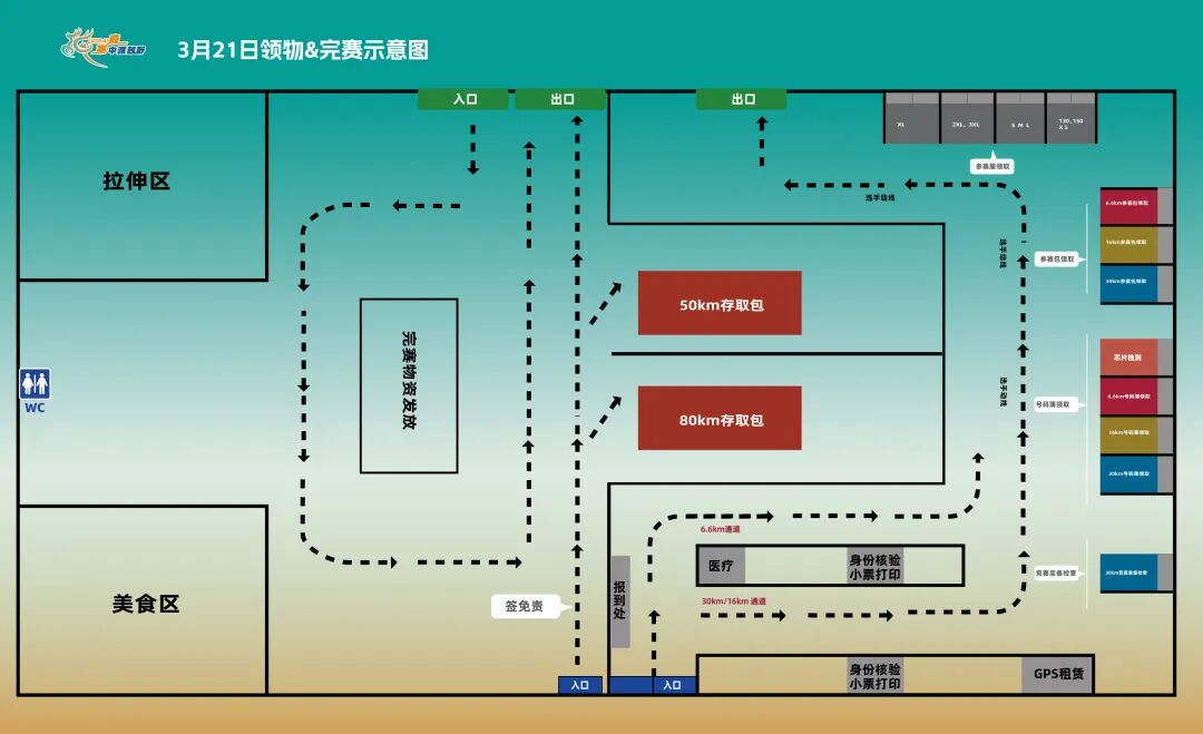 - 6.6公里组别赛事当日不设存包点,请携带好随身物品。