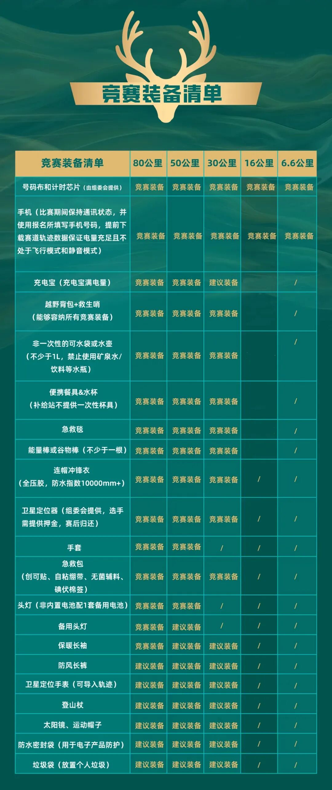 6、80公里/50公里/30公里组别需租赁GPS(竞赛装备),押金500元,完赛后归还设备,退还押金。