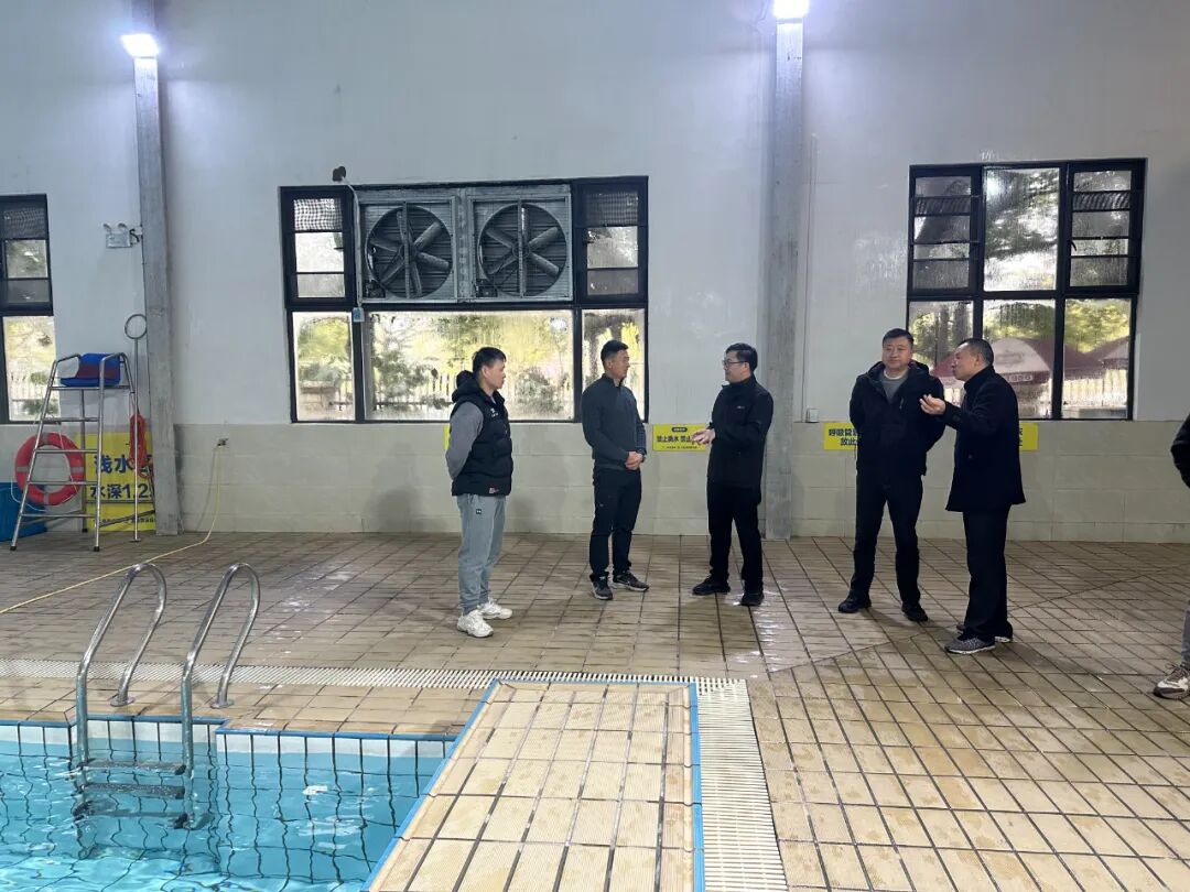 为认真贯彻落实习近平总书记关于安全生产和消防工作的重要指示精神,深入贯彻落实国务院、国家体育总局和自治区安全生产工作会议精神。自治区体育局青少处处长李黄勋、三级调研员孙波组成的安全督导小组于2024年2月4日抵达柳州,依次对我市“新型体校”柳州市第十二中学的五星游泳俱乐部、柳州市体育运动学校、场馆中的李宁体育馆和校外培训机构楠雁羽毛球业余体校进行安全生产整治督导检查工作。市体育局党组成员、副局长张久生,局安委会副主任谭运克,市体育局竞体科负责人黄力科、科员任凯风等全程陪同自治区督导组检查。