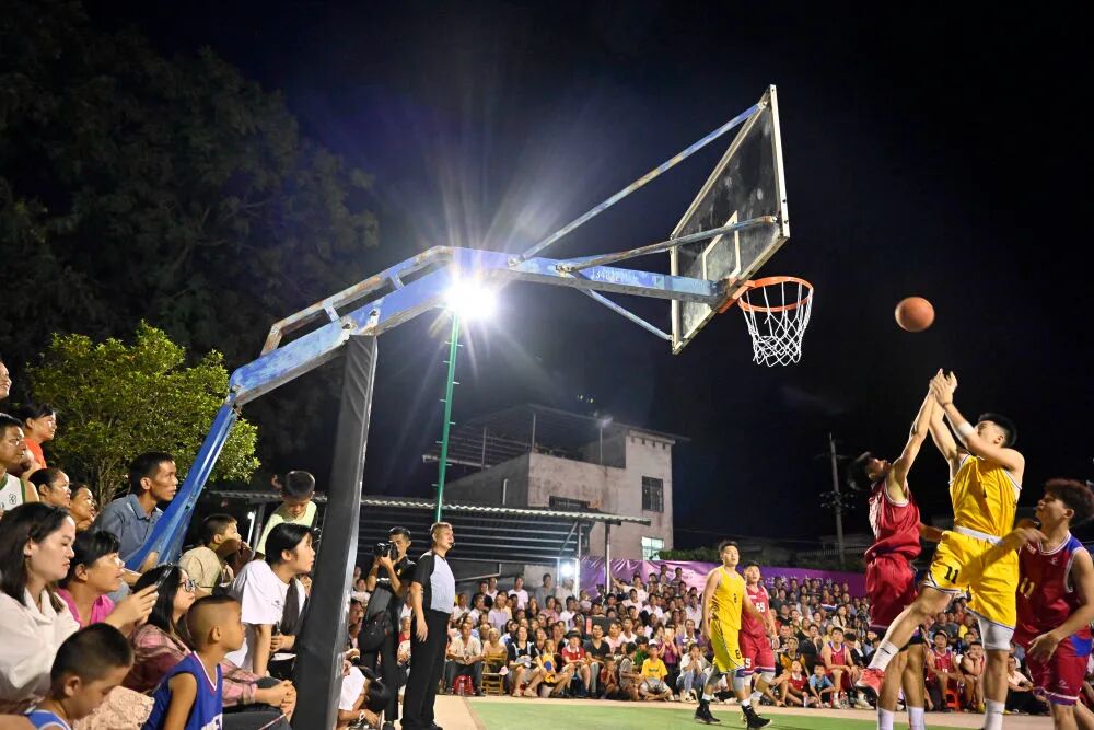 9月6日晚,柳州市柳江区穿山镇男子篮球赛在穿山镇平地屯举行决赛,吸引附近村屯众多村民前来观赛。新华社发(黎寒池 摄)