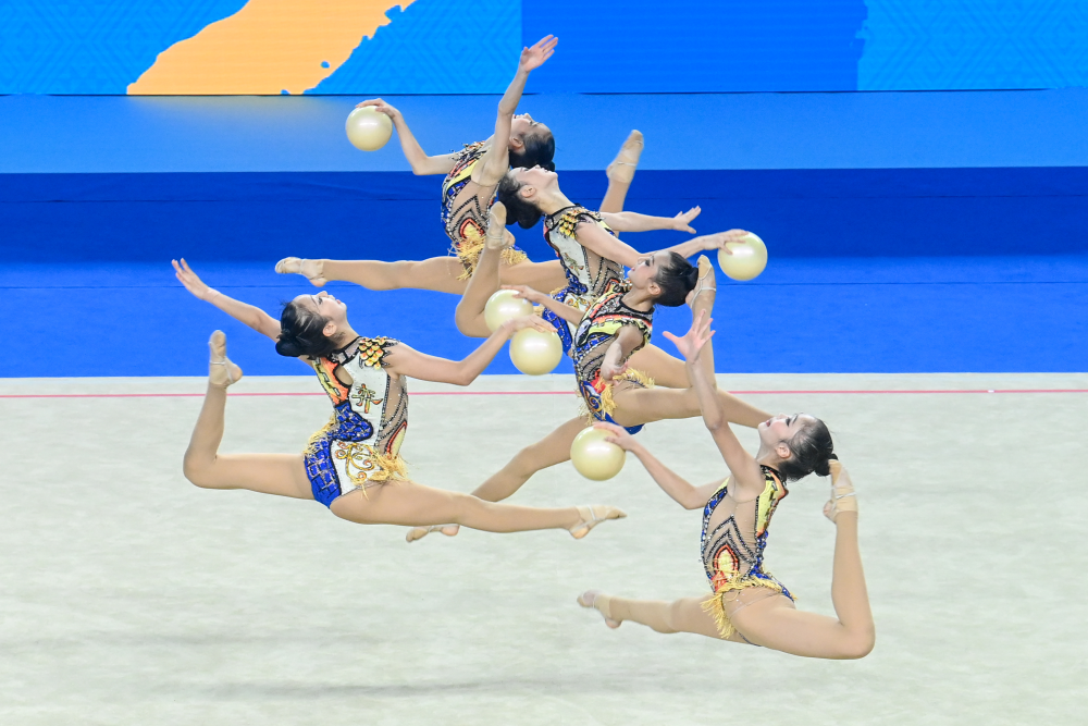 10月28日,第一届全国学生(青年)运动会艺术体操项目在柳州开赛。赛事组委会供图