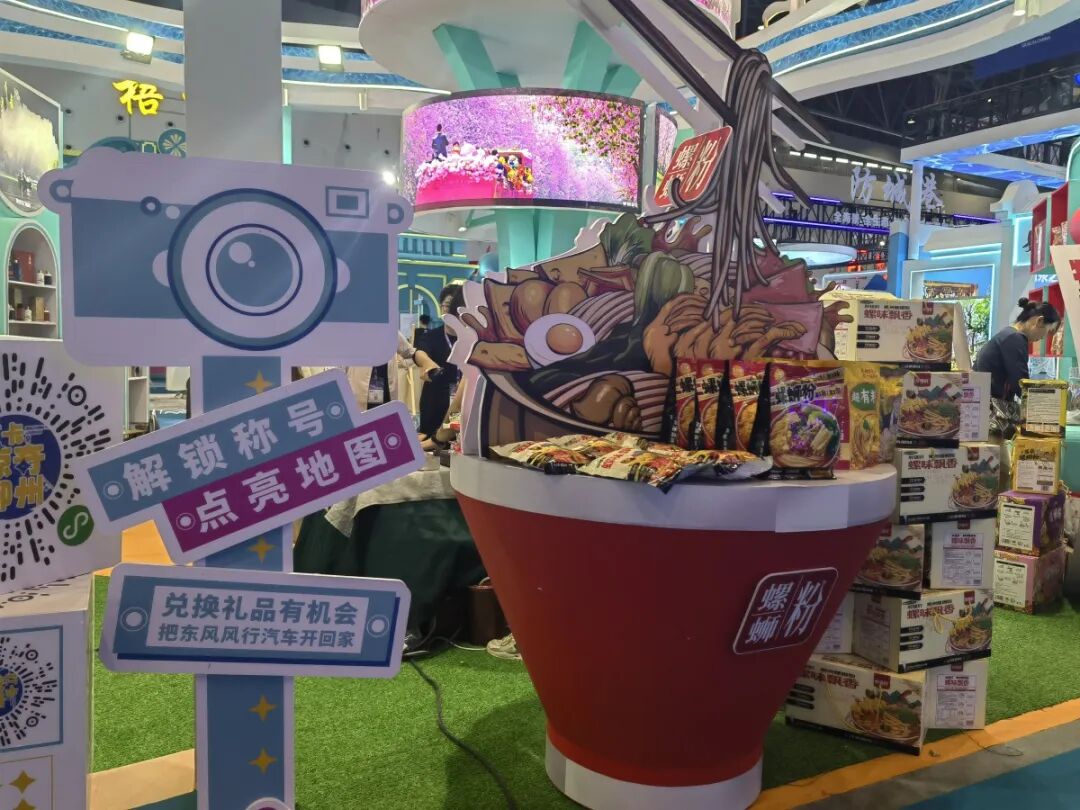 记者来到“惊奇柳州”主题展位看到,从展位搭建、节目表演到产品展示,都经过精心组织和设计。柳州结合“六个一”城市名片(“一台车(柳产汽车)、一江水(百里柳江)、一朵花(柳州紫荆花)、一碗粉(柳州螺蛳粉)、一宗师(柳宗元)、一歌仙(刘三姐)”),设计风格独特、色彩鲜明、元素丰富的活动展位,设置了文创、非遗、美食、“打卡惊奇柳州”活动等展区,融合了刘三姐、柳江、紫荆花、柳宗元、螺蛳粉、柳产车等特色元素。