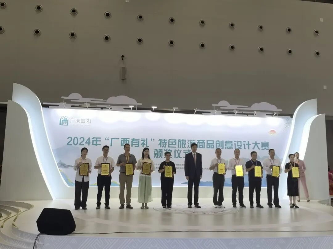 旅游展期间,同步举行了2024年“广西有礼”特色旅游商品创意设计大赛颁奖典礼。“广西有礼”特色旅游商品创意设计大赛揭晓,柳州一家食品科技公司参赛商品“自热型柳州螺蛳粉”、三江侗族自治县一茶叶有限公司参赛商品“即食三江油茶礼盒”获企业组铜奖,广西工艺美术学校两件作品捧回高校组铜奖。柳州市文化广电和旅游局荣获2024年“广西有礼”特色旅游商品创意设计大赛最佳组织奖。