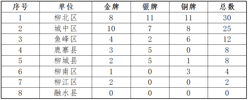 柳州市第十六届运动会蹦床比赛奖牌统计