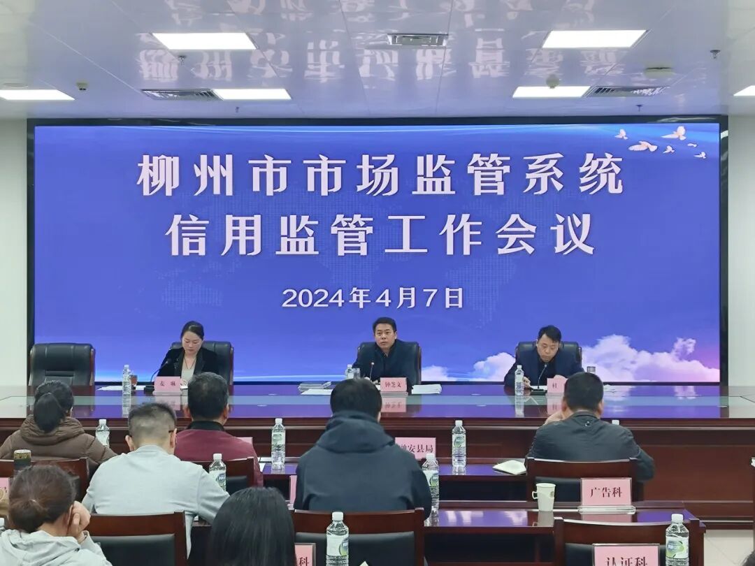 4月7日,柳州市市场监管局召开全市市场监管系统信用监管工作会议,总结2023年信用监管工作情况,安排部署2024年重点任务。会上,三江侗族自治县、鹿寨县、鱼峰区和柳北区市场监管局分别就信用修复、年报、个体工商户信用分类监管、“双随机、一公开”、列严列异等工作进行交流发言。