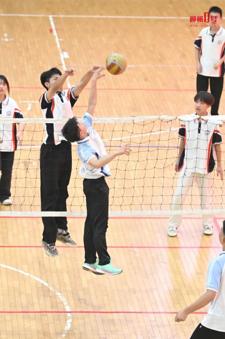 4月8日,柳州铁一中学(初中部)体育馆内,“班超”排球联赛精彩上演。赛场上,运动员们精神饱满,传球、垫球、扣杀动作连贯,配合默契。从奋力接球到精准进攻,都展现着昂扬的青春姿态。赛场边,啦啦队员们齐声加油,为运动员们鼓劲助威,浓厚的运动氛围弥漫整个场馆。