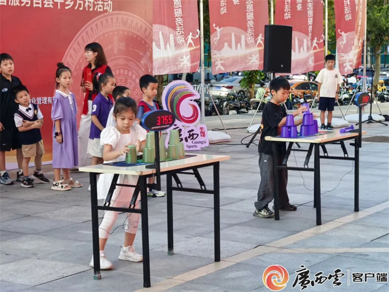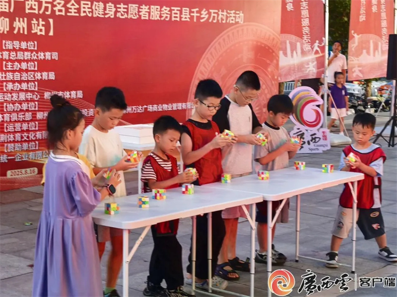 8月16日,“奋进新征程 运动促健康”2025年广西全民健身志愿服务活动暨第十届广西万名全民健身志愿者服务百县千乡万村活动柳州站,在柳州市城中万达广场盛大启幕。活动围绕跳绳、竞技叠杯、魔方三大侧重手眼协调、思维敏捷性与趣味性的体育项目开展分散式专业指导与互动,创新特色鲜明。其中,跳绳、竞技叠杯两大项目的世界冠军组成志愿者嘉宾团,为市民带来兼具 “专业高度” 与 “民生温度” 的全民健身盛宴,推动科学健身理念深入基层。