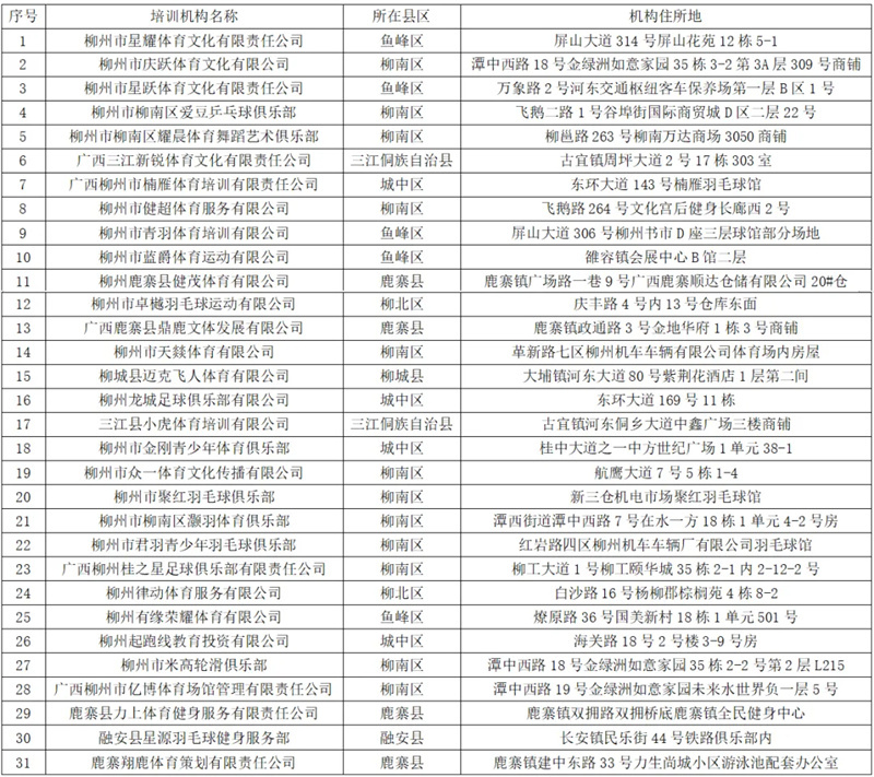 柳州市体育类校外培训机构2025年第三次白名单汇总公示